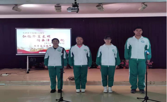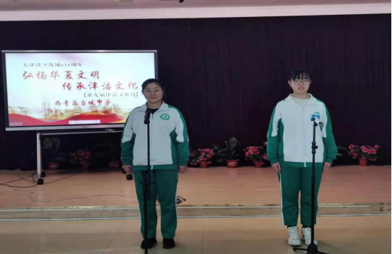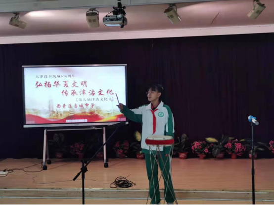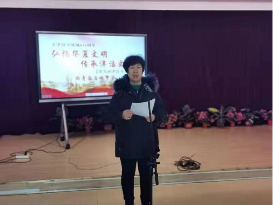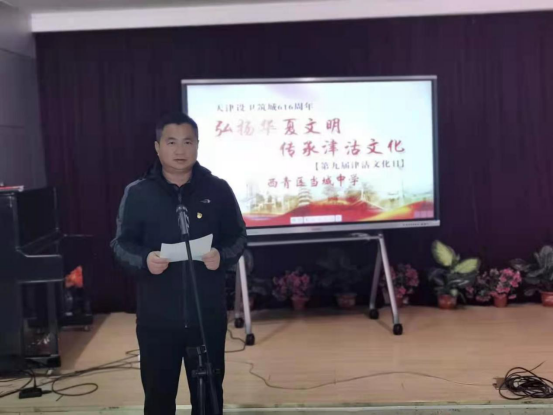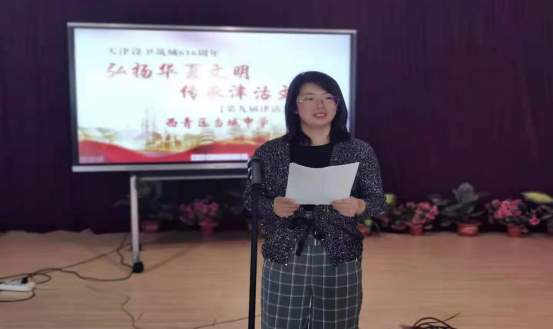 李琳琳老师宣布 “西青区当城中学第九届津沽文化日”主题文化活动开幕。