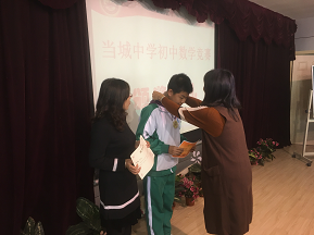 11月25日上午组委会将最终成绩进行公示,下午大课间在大会议室举行了此次竞赛的颁奖仪式,张欣主任作为颁奖嘉宾向冠军学生邹子轩和指导老师高艳老师颁发了金牌和荣誉证书。