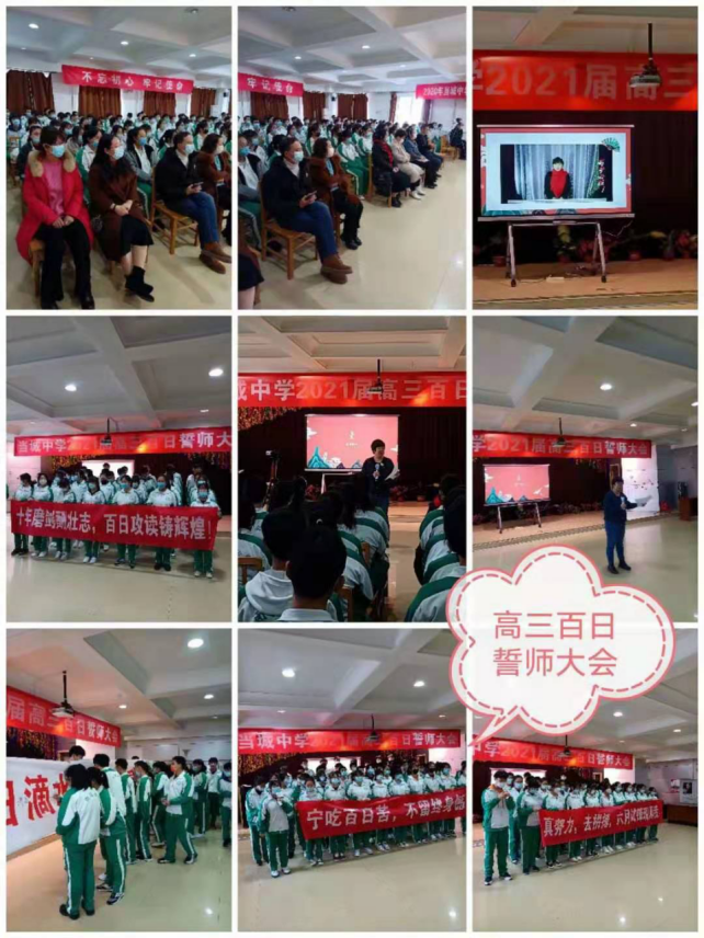 中高考的誓师活动是我校每年春季必定组织的项目,其目的在于进一步激发全体毕业班年级师生的信心和勇气,让他们在最后的日子里不断拼搏、不断奋斗、不留遗憾,争取在中高考的考场上发挥出最佳的状态,考出理想的成绩,为自己的学业画上一个圆满的句号。