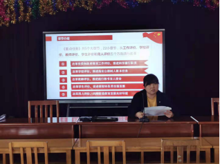 教育评价事关教育发展方向,有什么样的评价指挥棒,就有什么样的办学导向。为深入贯彻落实习近平总书记关于教育的重要论述和全国教育大会精神,完善立德树人体制机制,扭转不科学的教育评价导向,坚决克服唯分数、唯升学、唯文凭、唯论文、唯帽子的顽瘴痼疾,提高教育治理能力和水平,加快推进教育现代化、建设教育强国、办好人民满意的教育,2021年4月25日下午,我校刘昕老师针对教育评价改革方案给全体老师进行了相应培训。