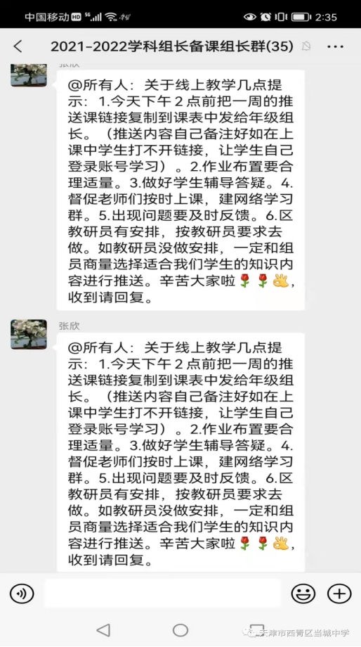 2022年春节过后,大地回春,万物复苏,新的学期也悄悄走来。根据《天津市中小学2022年春季学期开学安排的通知》及西青区教育局相关文件要求,为确保“停课不停学、学习不延期”,我校根据实际开展了线上教学活动。
