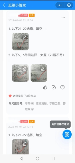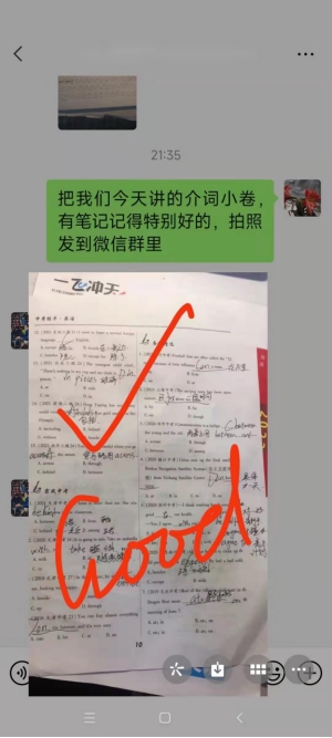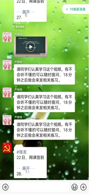 为了更好的完成教学任务,督促学生完成作业,我校教师在线上教学结束后还会通过班级小管家、微信群、接龙管家等方式发布作业与批改作业。相比书面批改作业,线上批改作业更具亲和力,师生的互动性更强、更充分。我校教师还会通过微信视频、语音、直播等方式对个别学生提出的问题进行答疑、辅导。此外,我校教师还对学生进行心理疏导,为其排忧解难、缓解压力。