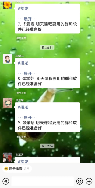 本次线上教学,各个学科的任课教师充分发挥主观能动性,积极探索适合自身的线上直播方式。腾讯会议、微信群直播、钉钉直播等方式是任课教师的主要选择方式。一开始,部分老师对线上直播很生疏,但是他们仍然努力学习线上教学的方法,遇到直播中出现的各种问题,大家都会在群里交流、反馈,最终老师们都能够熟练使用适合自己的直播方式,进一步提高了教学效率。