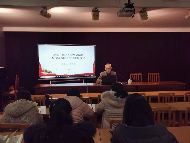 12月8日, 教育局李树雄主任到我们学校为全体党员进行十九届五中全会精神宣讲。