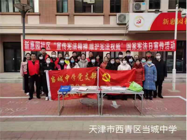 2020年12月1日下午,当城中学志愿者(党支部全体党员、入党积极分子)联合新惠园社区党支部在新民园小区进行了宪法知识入户宣传活动。