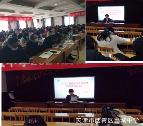 2021年3月2日,边金玲校长在学校全体教师会上就2021年2月27日网传津南区肖某某不当言论事件,津南区教育局处理情况向全校教师进行了通报,要求全体教师深刻反思、汲取教训、 引以为戒。然后边校长组织全体教师重温了《市教委工委 市教委关于建立天津市教师师德承诺书和师德档案的通知》,深入学习了《西青区教育系统违反师德负面清单问题处理办法》、《西青区中小学教师师德考核办法》《中小学教育惩戒规则》,要求全体教师对照文件内容和教师“十项准则”的要求进行自查整改,在全校深入开展警示教育活动,整顿师德师风,坚决杜绝此类事件在本校的发生。
