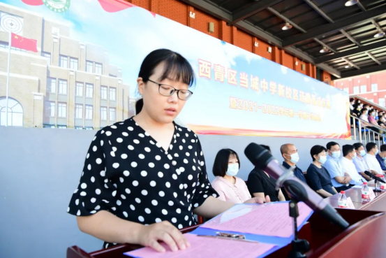 在当城中学校园操场,同学们身穿统一校服,队列整齐,朝气蓬勃,开学典礼在庄重的升旗仪式中开始。区委副书记齐中波在致辞中表示,金秋九月丹桂香,正是读书好时节。全校师生在新校园迎来新学期,新学期昭示着新气象,也必将开启新征程。齐书记对广大师生提出两点期望:一是希望同学们珍惜优质学习环境,努力学习,努力成为建设祖国和家乡的栋梁之才。二是希望全体教职员工继续发扬爱岗敬业、无私奉献精神,把当城中学办成学生向往、家长满意、社会赞誉的学校。