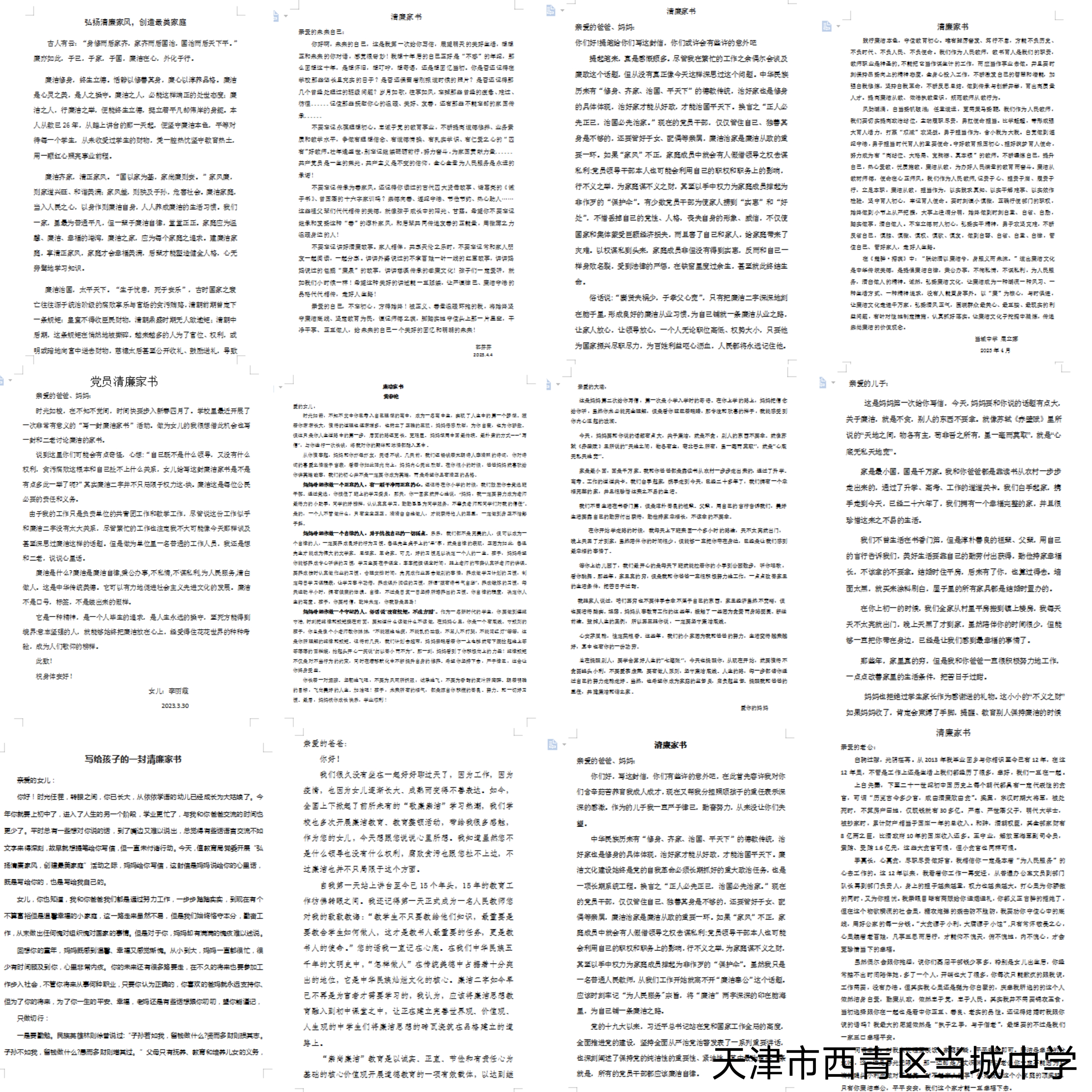 近日,学校党支部面向全体党员教师及家属开展了“弘扬清廉家风,创建最美家庭”清廉家书征集活动,引导广大党员教师切实增强廉洁修身、廉洁齐家的思想自觉和行动自觉,筑牢拒腐防变“家庭防线”。