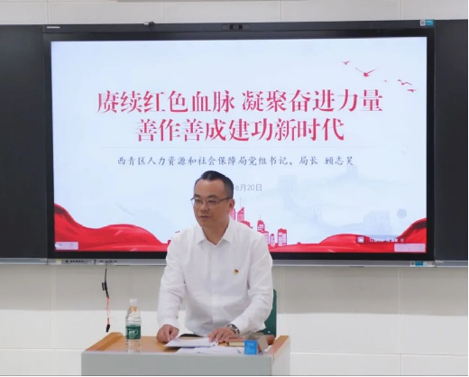 微党课后,西青区人社局党组书记、局长顾志昊以“赓续红色血脉,凝聚奋进力量,善作善成建功新时代”为题,与大家交流了三点感想。