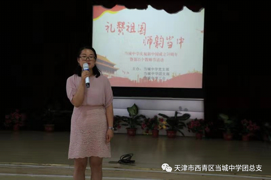 九月的天空,清新明媚;九月的阳光,温暖灿烂。在新学期的忙碌中我们迎来了第35个教师节,2019年9月10日下午,当城中学全体教师欢聚一堂,开展了“礼赞中国,诗韵当中”的主题活动。本次活动由当城中学党支部、当城中学团支部及当城中学工会联合主办,由占津晶老师主持。