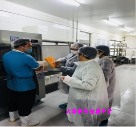 图为我校领导及教师代表询问冷冻食品存放、入库情况